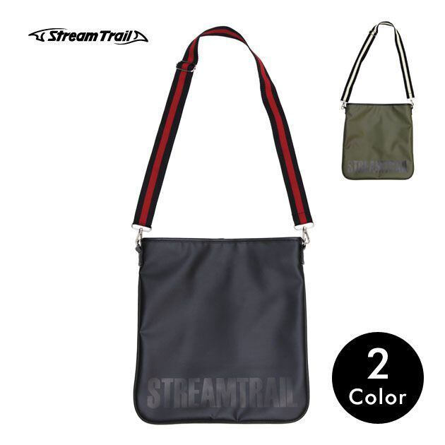 シンプルで様々なスタイルに合わせやすいフラットバッグです。少し大きめの余裕のあるサイズが、雑誌や書類などなど収納可能です。バッグ内側には、財布やスマートフォンなど収納できるポケットが付いています。また、ショルダーベルトはよりカジュアルなコットンベルトを使用し、バックルにはシルバーカラーのメタル素材を配しています。Onyx,ODカラーともStream Trailのロゴマークは、フロント下部にプリントされています。